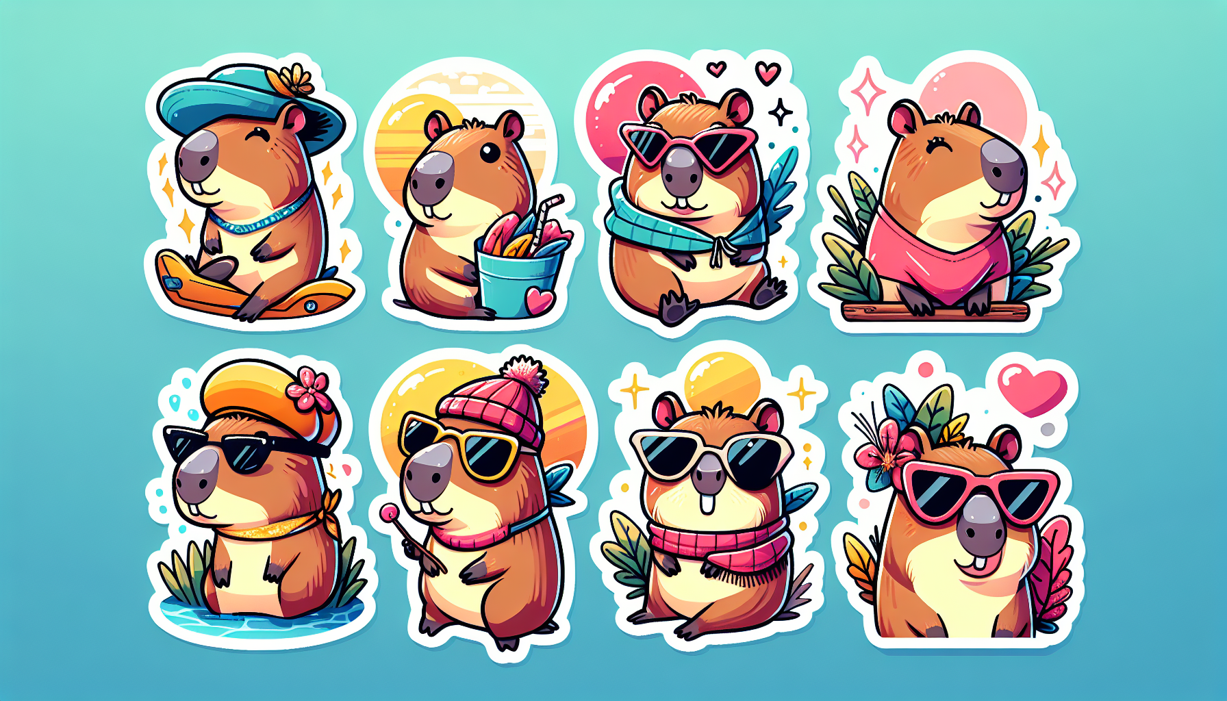 Stickers are a versatile and exciting way to personalize belongings and express oneself, and when they feature the adorable capybara, they become even more appealing. Known for their calm demeanor and sociable nature, capybaras are large rodents native to South America. In recent years, their charming appearances have captured the hearts of many around the globe, leading to their rise in popularity as a motif in various accessories, including stickers. These stickers not only add a touch of quirky charm to items but also brighten up everyday objects with a glimpse of wildlife.