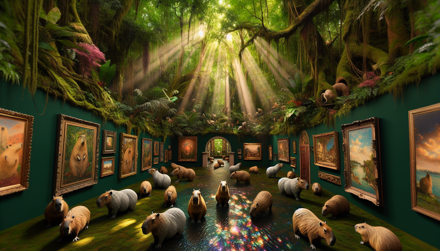 In recent years, the capybara has gained popularity beyond the confines of visual arts, appearing in animated films, television shows, and internet memes. This wider cultural exposure has further increased their appeal as subjects in artistic expressions, creating a sort of whimsical iconography that resonates with a broad audience globally.